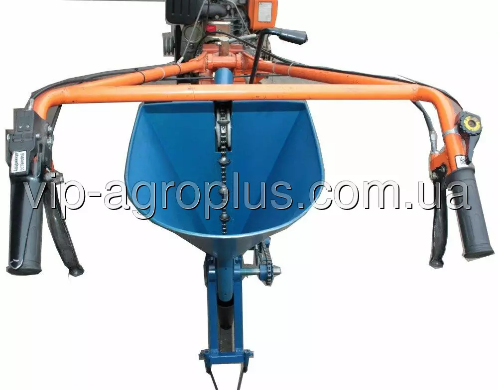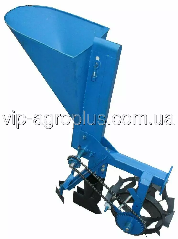 Агрегатируется с мотоблоками мощностью от 6 л.с. Грунт требует подготовки. Для посадки нужно использовать откалиброванные зубки чеснока размером 15-25 мм. Ёмкость бункера для посадочного материала 10 литров.