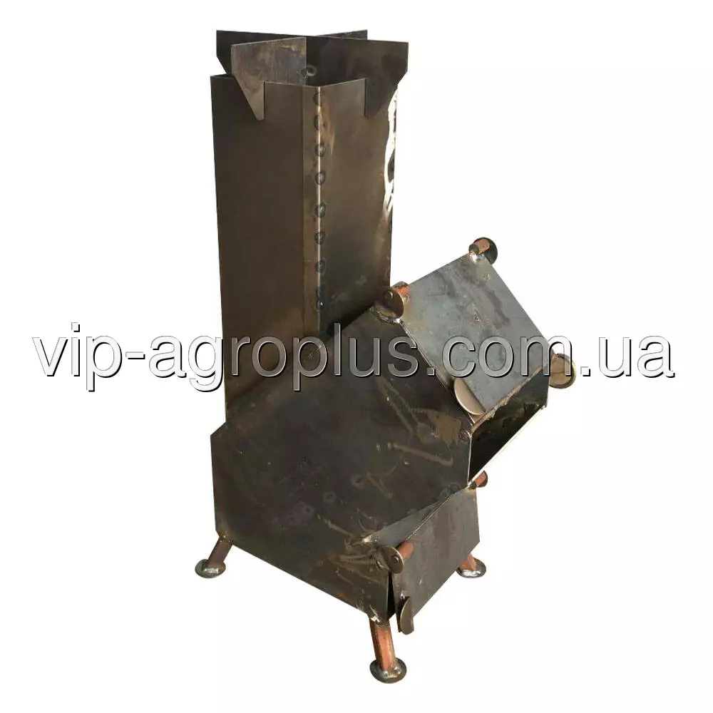 Надійна фіксація і стійкість печей «Ракета» на поверхні забезпечуються завдяки трьом сталевим ніжкам. Дно «Ракети» виготовлено зі сталевого листа товщиною 3 мм.